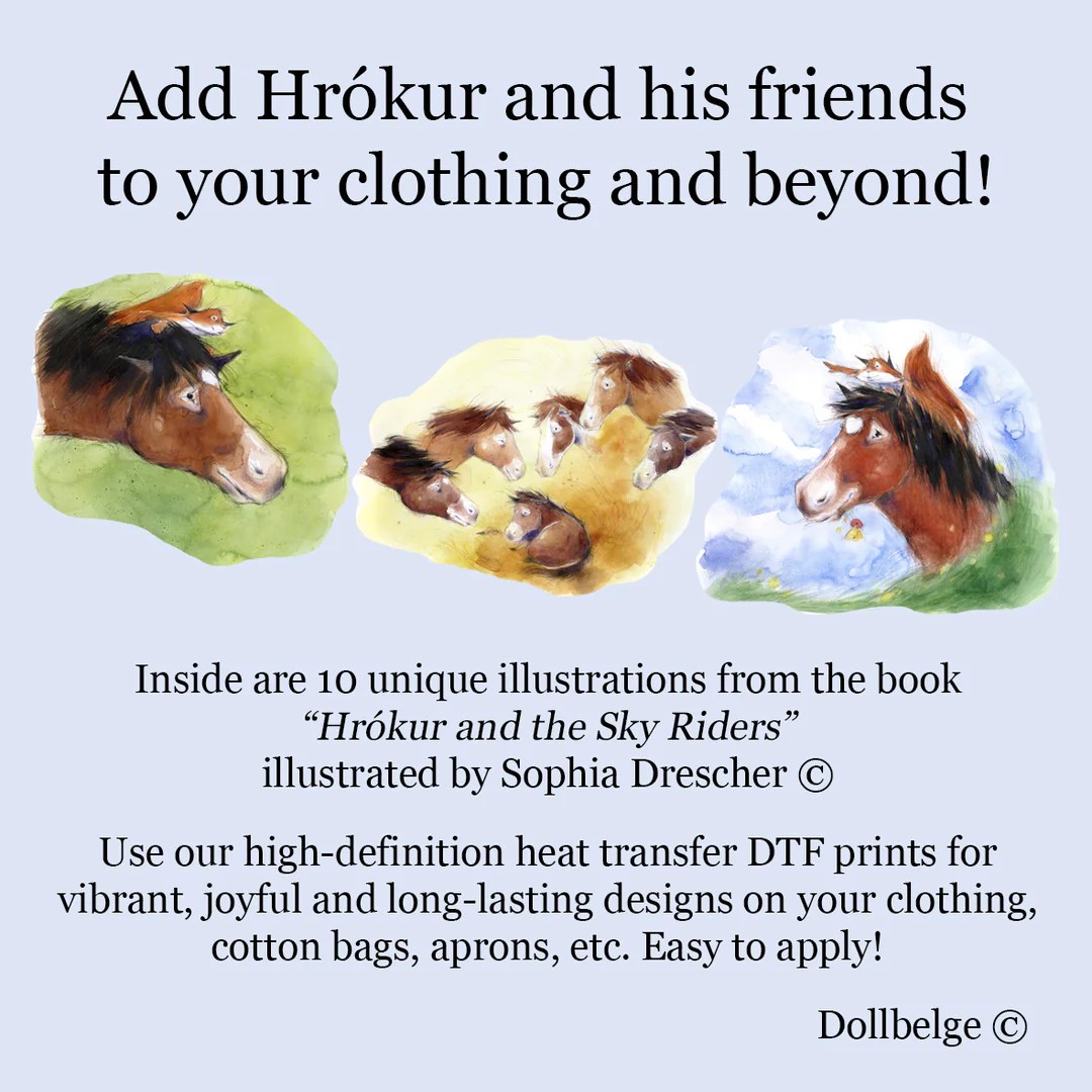 Use our – very easy to apply – high-definition heat transfer (iron-on) DTF prints for vibrant, joyful and long-lasting designs on your clothing, cotton bags, groceries bags, aprons, etc.