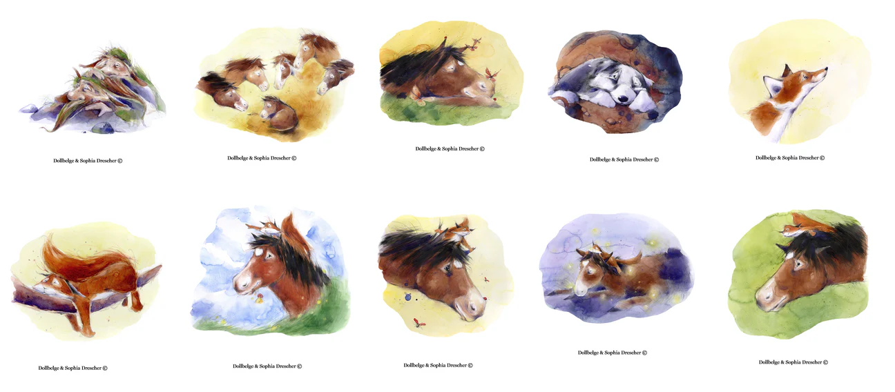 Per set are inside: instructions and 10 different beautiful illustrations by Sophia Drescher.