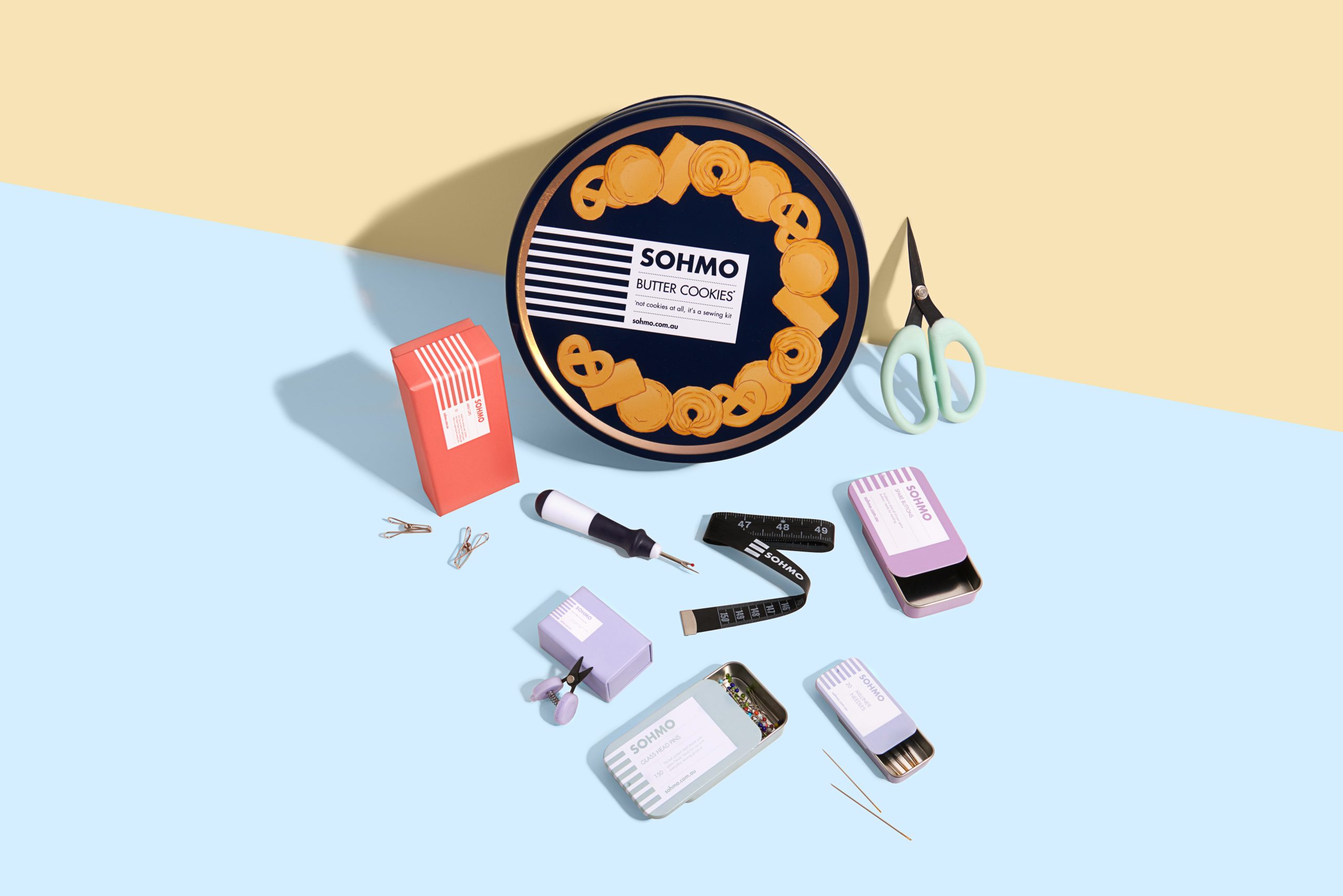 For generations, sewing kits lived in biscuit tins – a tradition found in homes across Australia, the UK, and beyond. Grandma’s sewing tin. The one that sat on the shelf and always turned out to have no actual biscuits in it. The SOHMO Butter Cookies Sewing Kit is a love letter to that tradition: a replica Danish butter cookies tin filled with a carefully curated set of high-quality sewing tools, chosen to actually be useful.
